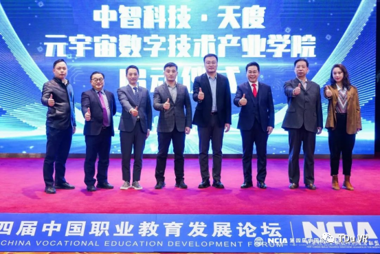 会上,中关村互联网教育创新中心总经理赵伟鹏,全国工商联教育商会副会长、北京新职业技能培训产业联盟主席胡锦澜,中智科技集团深圳分公司总经理高鹏,全国工商联教育商会职业教育委员会秘书长、北京民教信息科学研究院执行院长余武隆,天度股份董事长徐素文,全联民办教育出资者商会副会长卢飞成,天度股份联合CEO李光宁,天度股份企管部VP傅樱娣共同启动“中智科技·天度 元宇宙数字技术产业学院”。“中智科技·天度 元宇宙数字技术产业学院”以现代职业教育理念为引领,服务区域经济建设,全面深化产教融合、科教融汇,积极打造校企命运共同体。